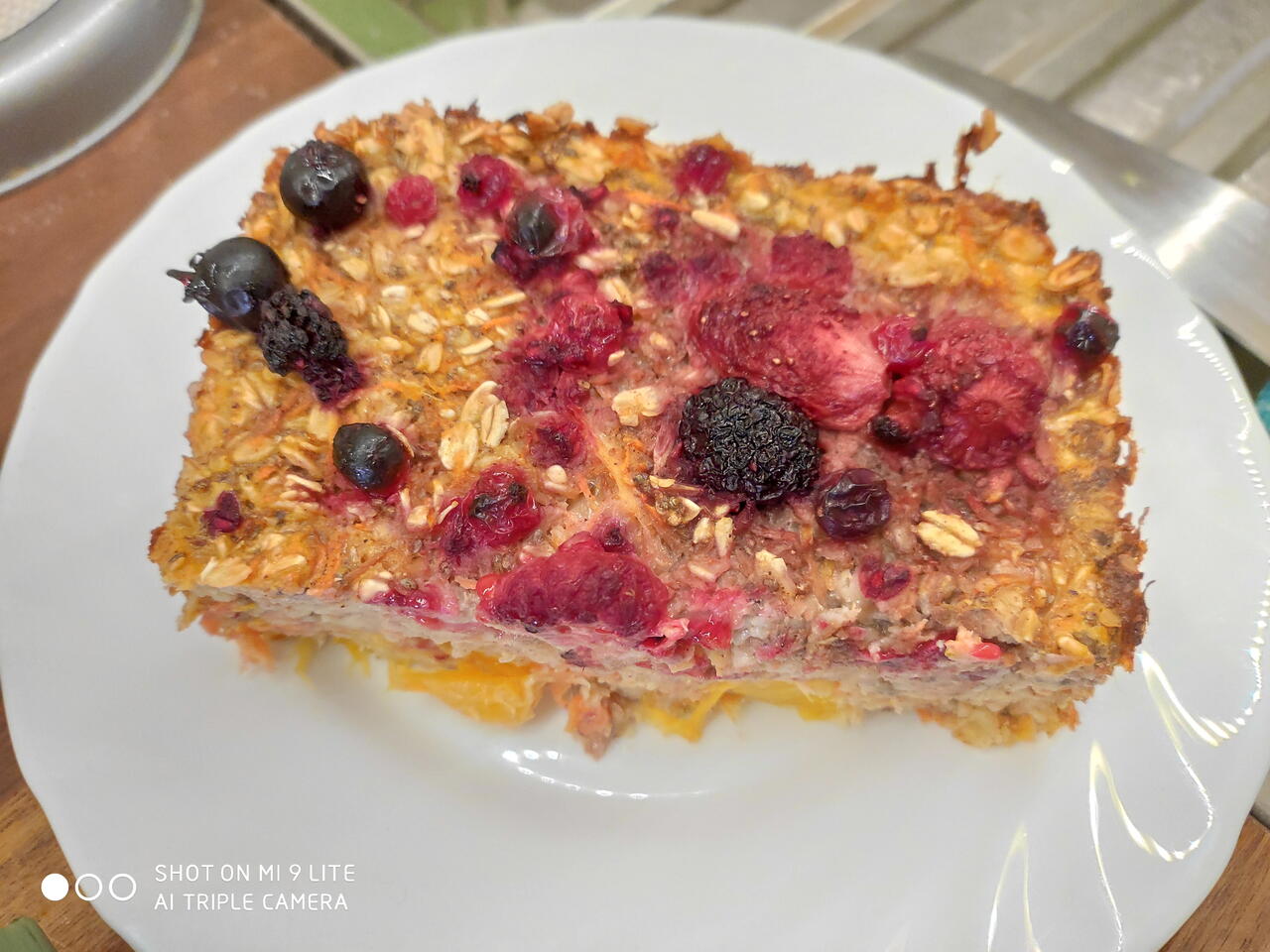 Koláč Z Vločiek S Mrkvou, Pomarančom a Lesným Ovocím