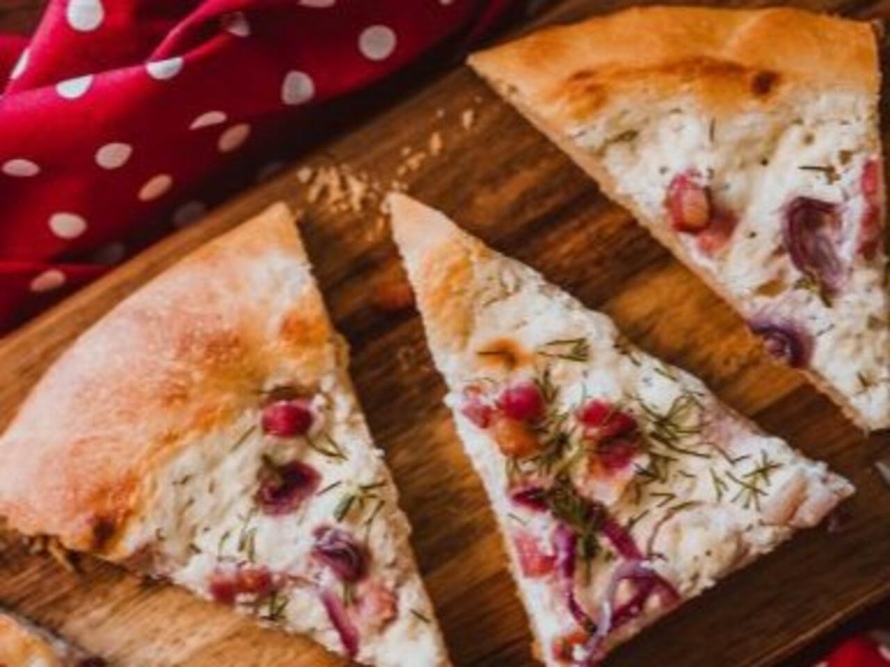 Bez ďalšieho kvasenia dáme hneď do rozohriatej rúry na 230´C a pečieme cca 20 minút.Upečený koláč posypeme čerstvým kôprom.
