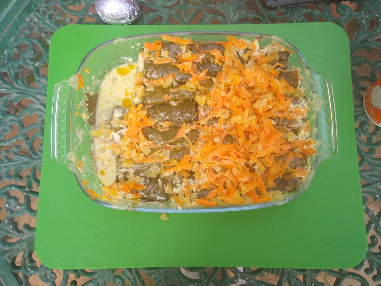 Зверху закриваємо листям винограду і фульгою (якщо є кришка то кришкою).