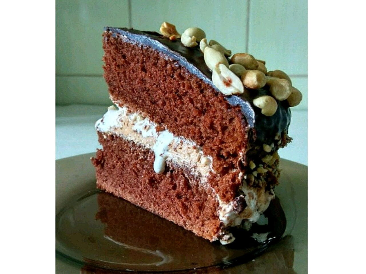 Готовий торт можете прикрасити на свій смак. Я зробив шоколадну глазур обмастив нею торт (псс...нуга в мене трішки витікала і я її так сказати запічатав шоколадом😆). По бокам обсипав подрібненим арахісом, а з верху виложив цілий.