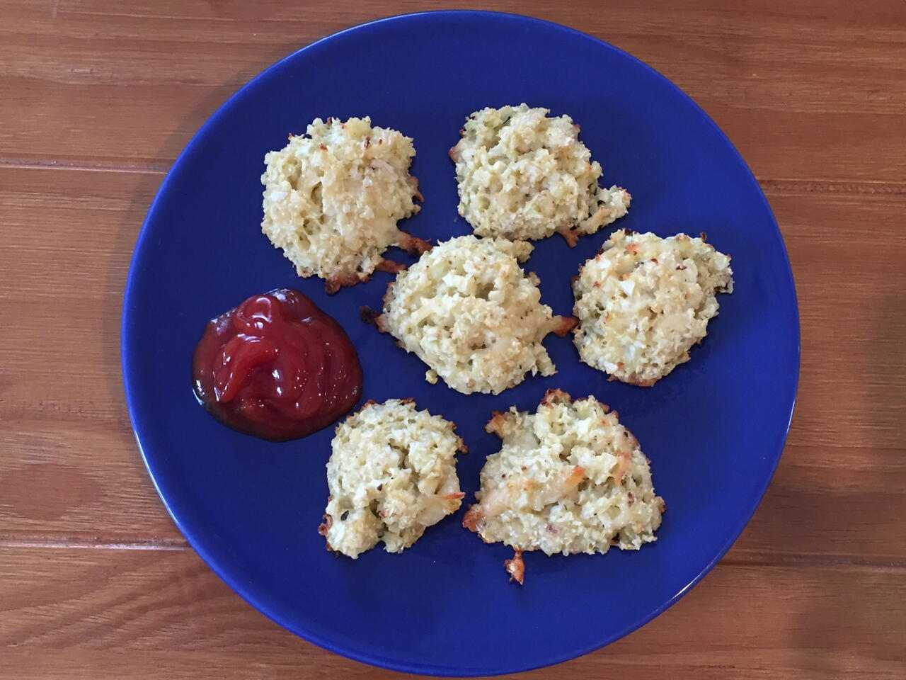 Looking for a fun new way to try cauliflower? This is a quick kid-friendly recipe, high in Vitamin C and a source of protein and dietary fiber. You can use already riced cauliflower or prepare it yourself using a food processor, box grater, or knife and cutting board. These are best when freshly baked.