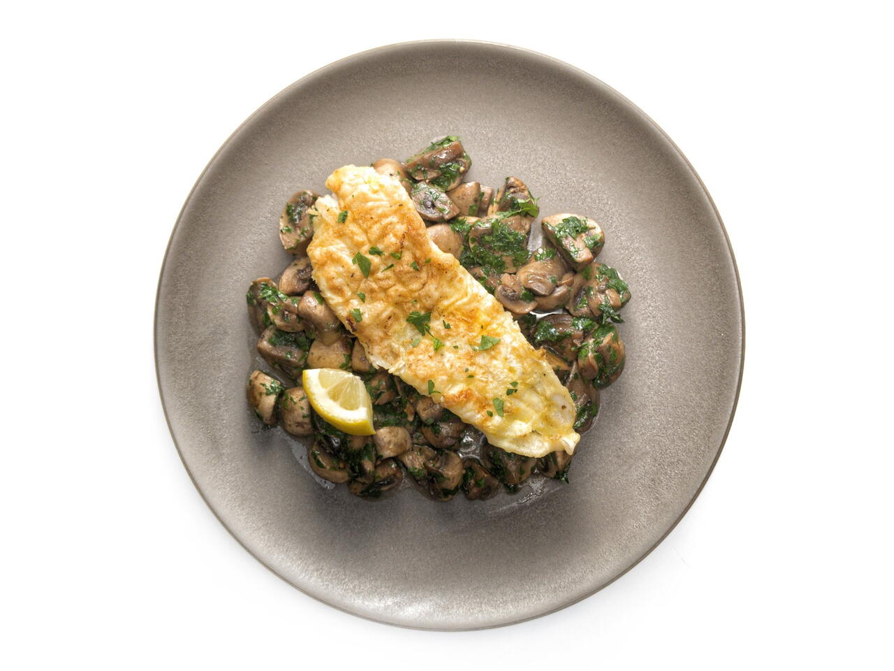 Serve fried sole over sautéed mushrooms with a wedge of lemon on the side.
