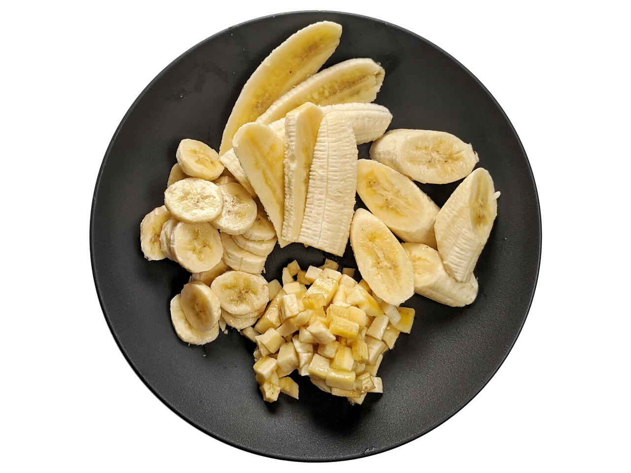 There are many ways to chop a banana. Here are a few options that can be used for banana cream pie, bananas foster, smoothies, fruit salad and many others!