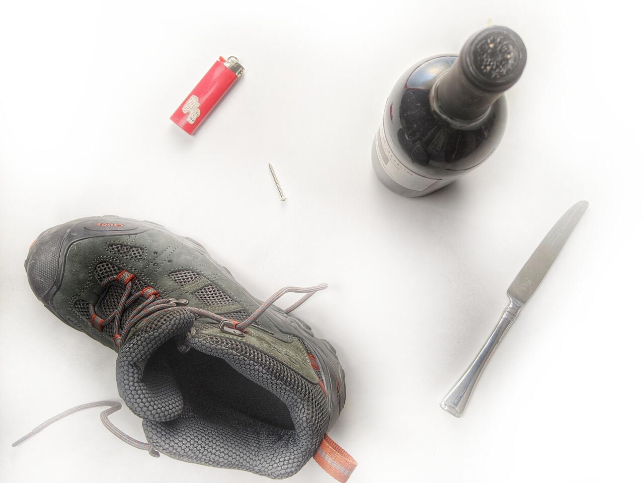 I went with a shoe with a thinner sole that would absorb less of the shock. So I increased the likelihood of breaking the bottle and still saw no results after several minutes of banging it on the sidewalk. This method really makes no sense.
