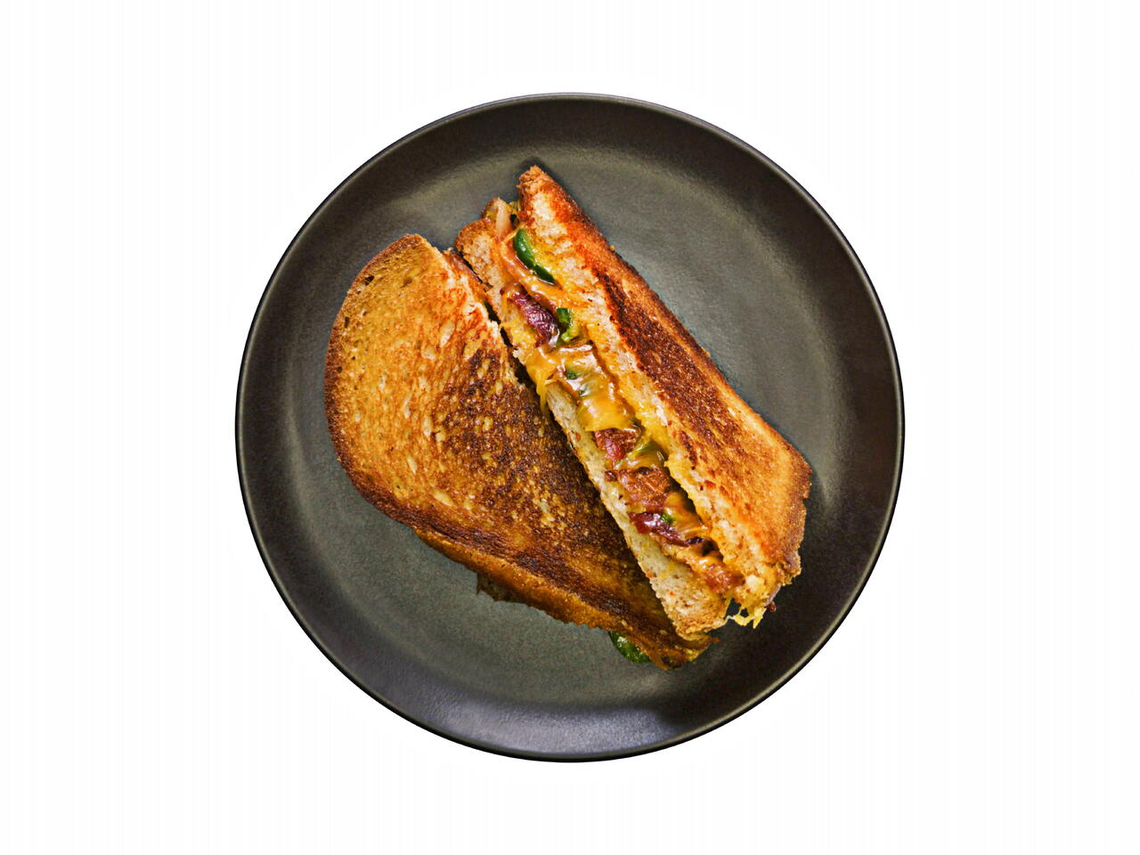 Add some butter to a skillet over medium heat and add the sandwich. Grill for a few minutes with a lid on to help melt the cheese. Then flip and grill for another few minutes adding more butter if needed until bread is golden brown and the cheese is melty.