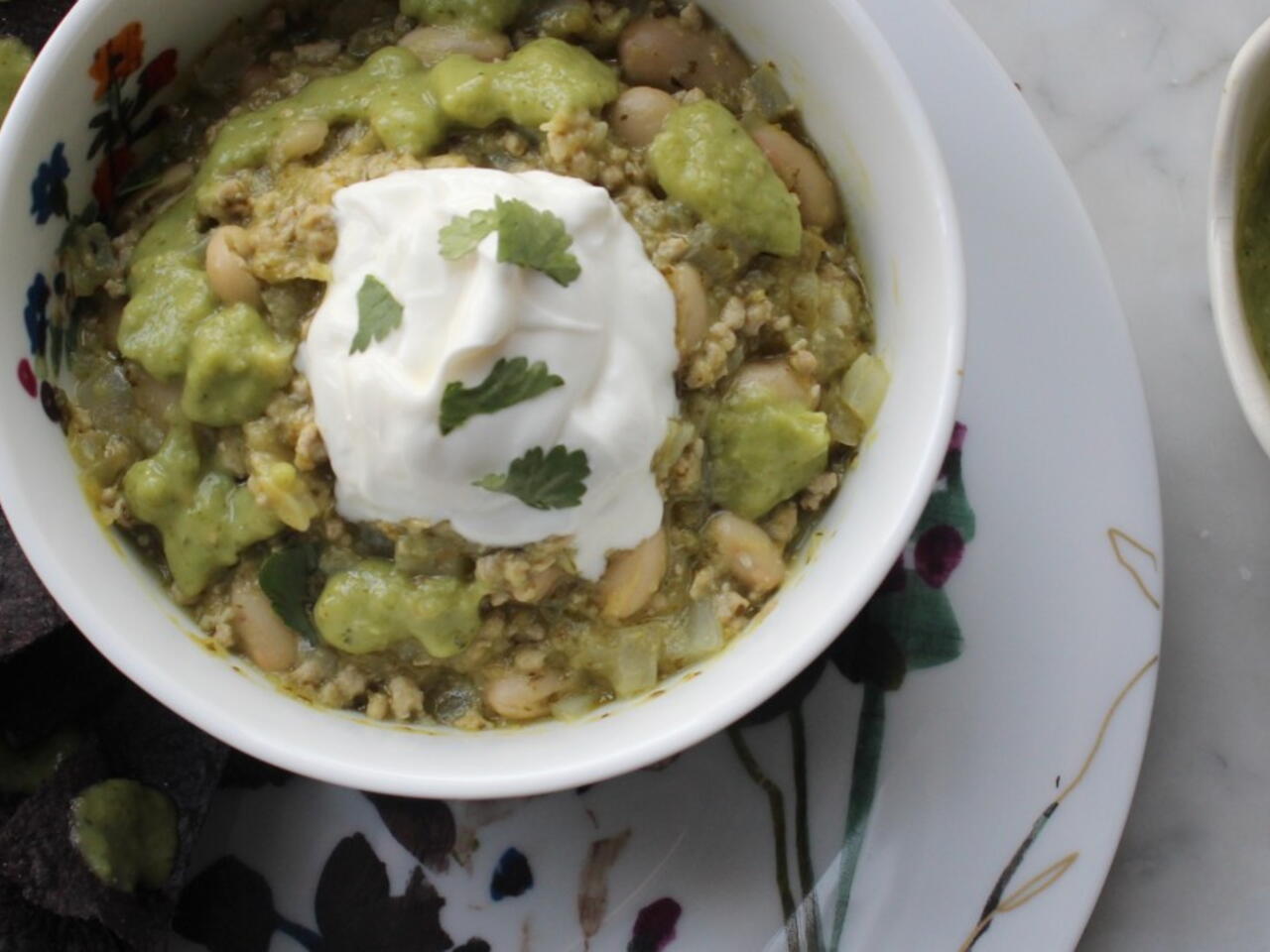 Add the tomatillo sauce, beans and water or stock to the pork mixture. Bring to a gentle boil. Reduce heat to low, and simmer for 30 minutes, stirring often. Stir in the lemon juice just before serving.