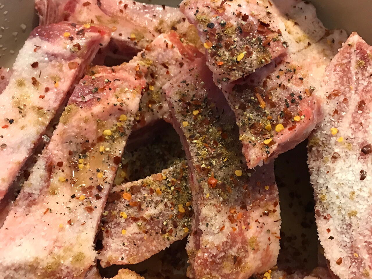 Place cut ribs with seasoning, 2 T olive oil and onions into the pressure cooker for 20 mins