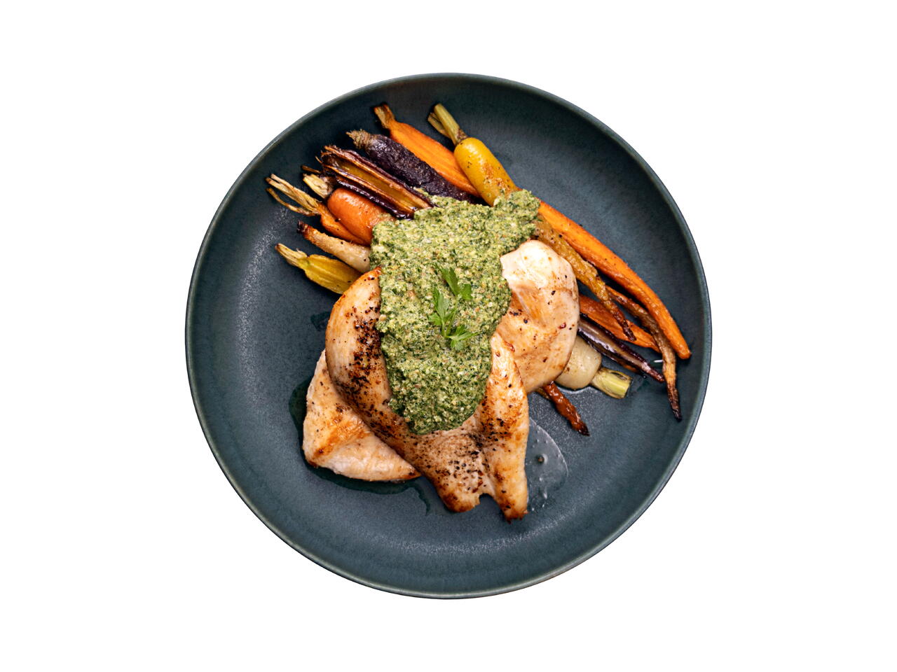Seared Chicken with Carrots & Mint Pesto