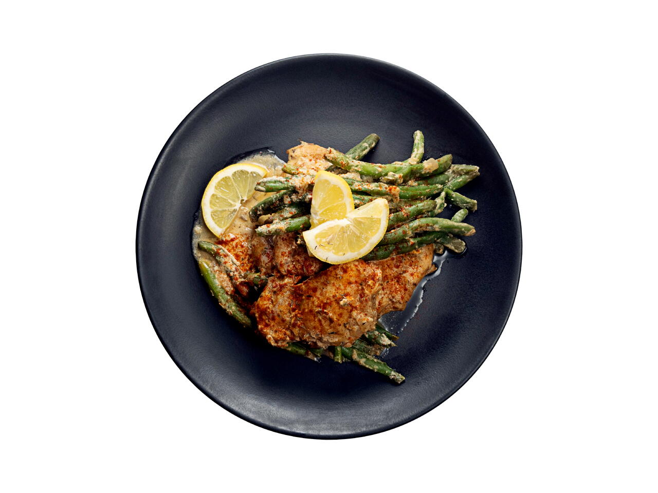 Skillet Chicken and Green Beans with Lemon-tahini Sauce