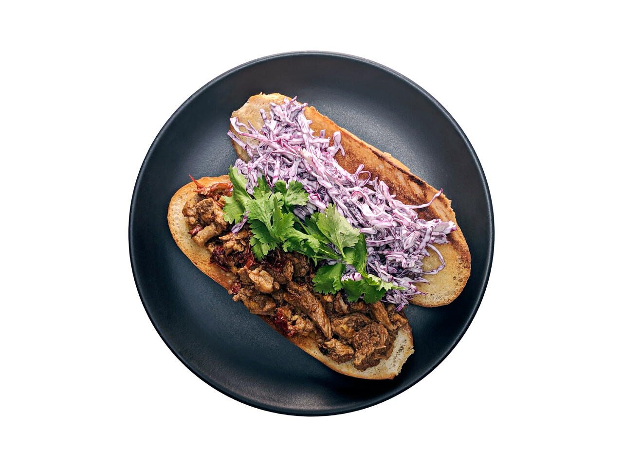 Top your rolls with pork and slaw. I also like a little fresh cilantro and some sliced tomato in there, but it's up to you.