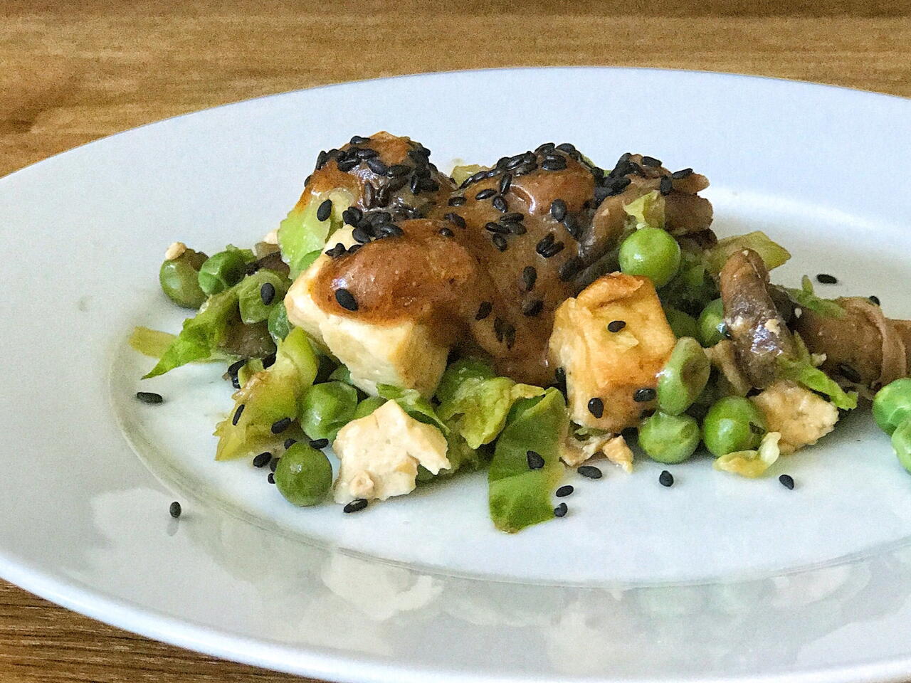 Serve with the miso almond butter sauce and sprinkle sesame seeds to make it look even better!
