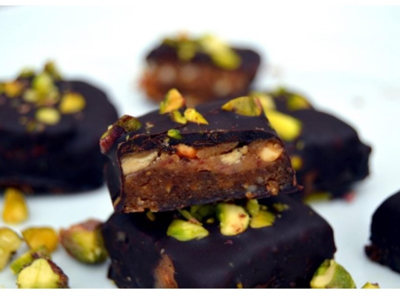 Sprinkle on the nuts while the chocolate is still liquid then put on a wire rack in the fridge.