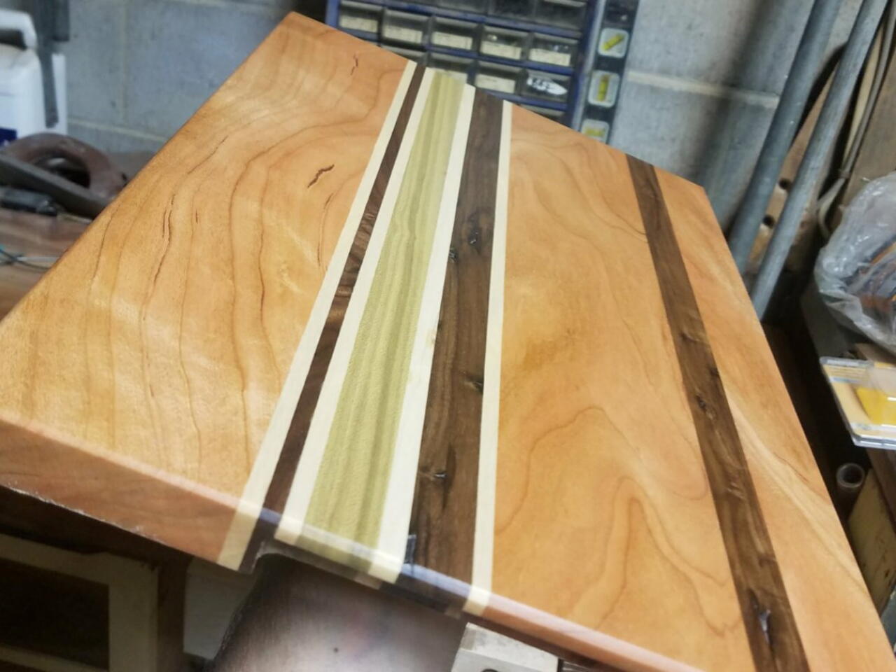 cherry ,walnut ,maple,poplar cutting board.finished with coconut oil with 1/4 mixture of bees wax