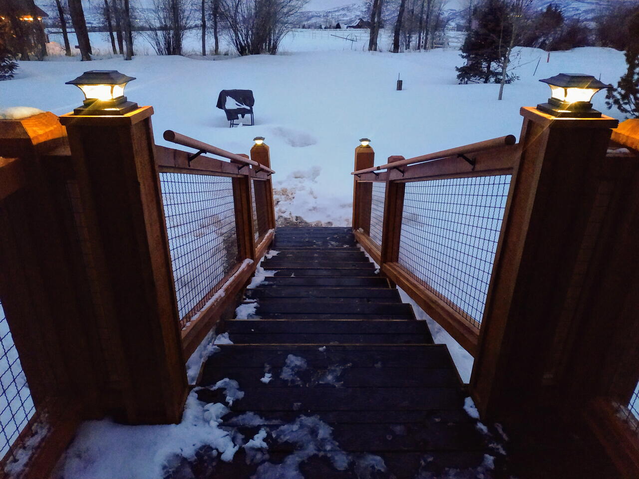 the before stair post was just two 3x6s nailed together. I can't ignore things like this so I went out of my way and did some cover/finishing work and added solar lights