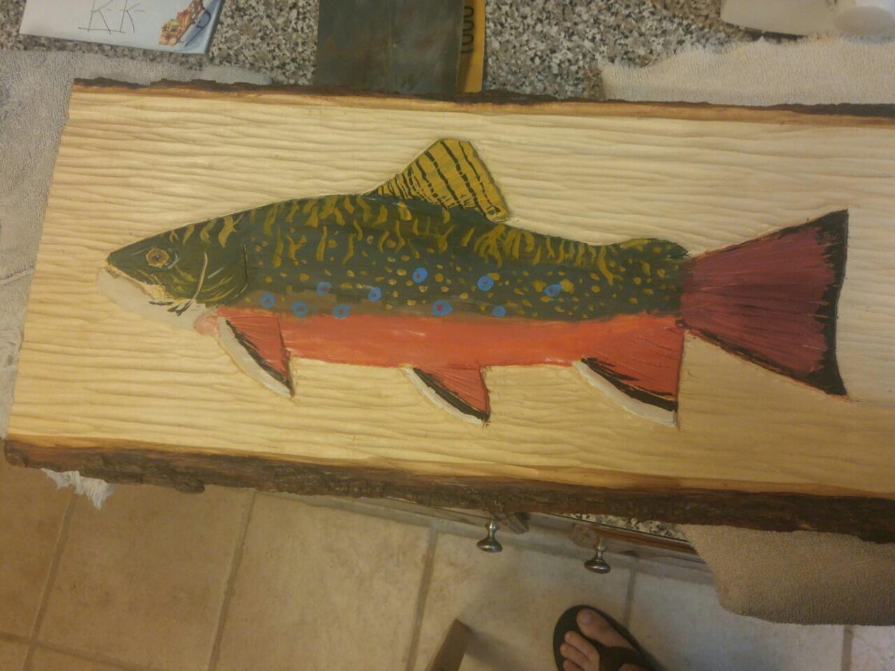 A friend of mine goes to Colorado during the summers to fish. He caught a massive Brook Trout but couldn't keep it so I decided to make him a carving to commemorate the fish.