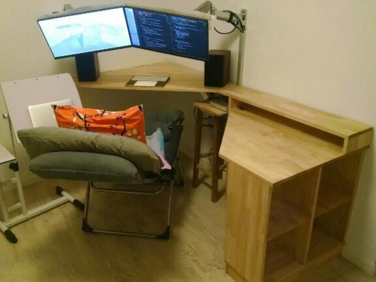 Everyone knows long time sitting will hurt your lumbar and cervical vertebra. So we want a human engineering designed chair. All those chairs are very expensive and can not provide perfect solution. Finally I design my perfect work station, once lay down in it, I never want to get out.