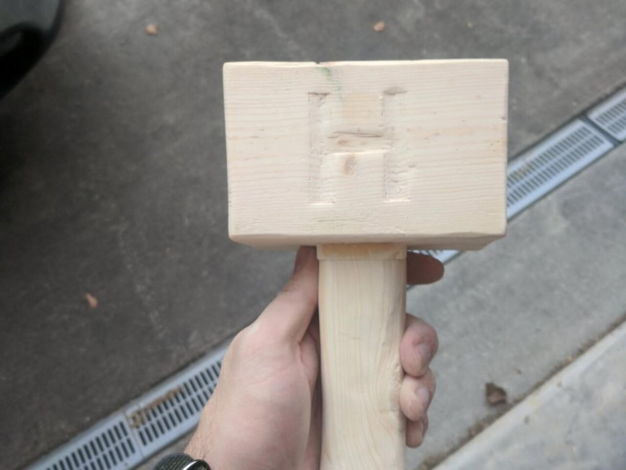 Used two 2x4 and cut equal parts on both peices. Used tightbond 2 and clapped the two pieces. After dry I cut mallet to shape and carved and sanded.