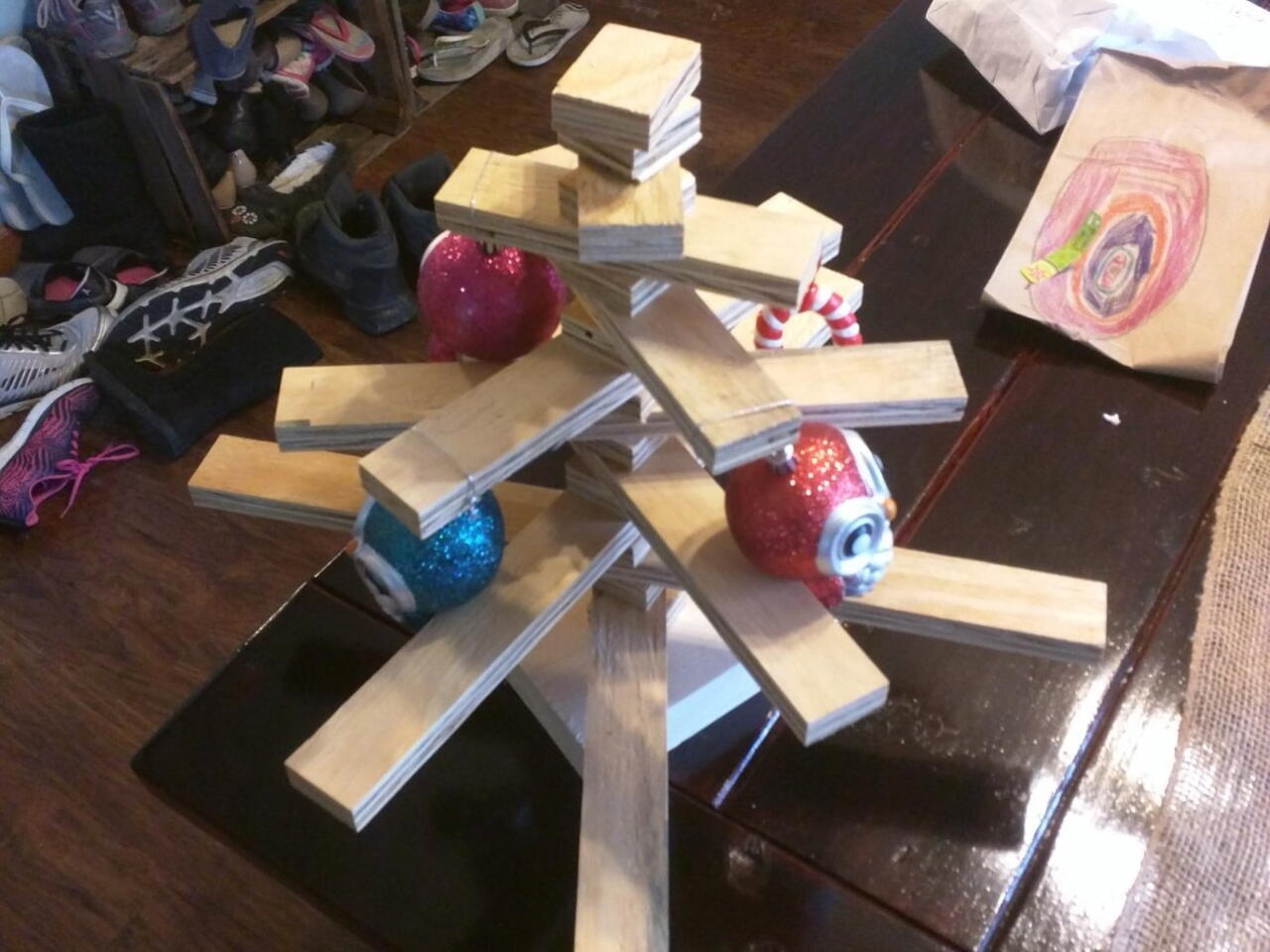 Just inch and a half pieces of plywood screwed in and inch and a half spacers.