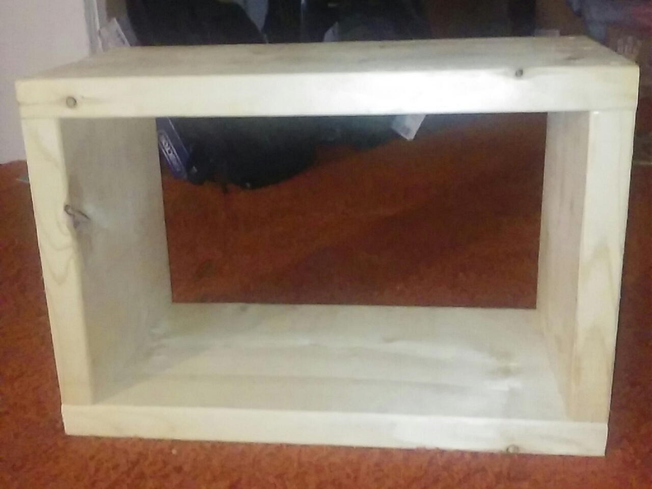 Place the side panels between the top and bottom panels, square them up and fasten them with the wood screws, 3 to a corner.