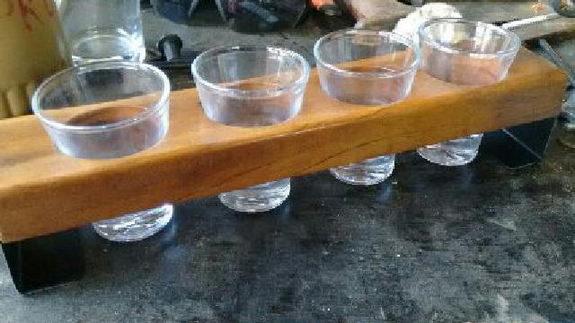 Drill the holes to fit the shot glasses