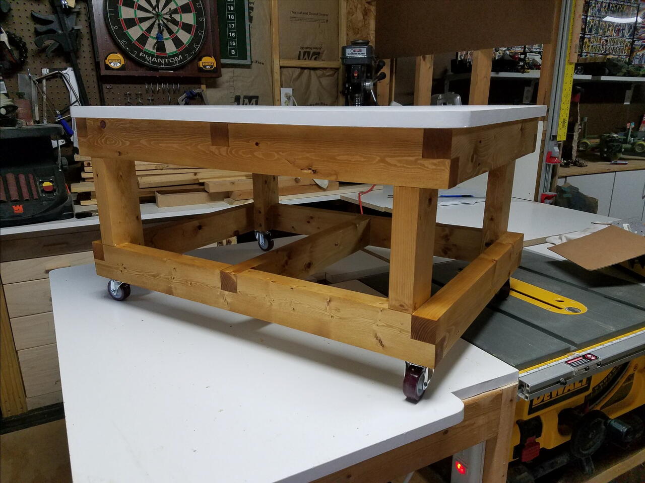 I used all scrap 2x4s that I salvaged from a demo job in my buddies basement. The top is melamine I had left over that I edge banded.