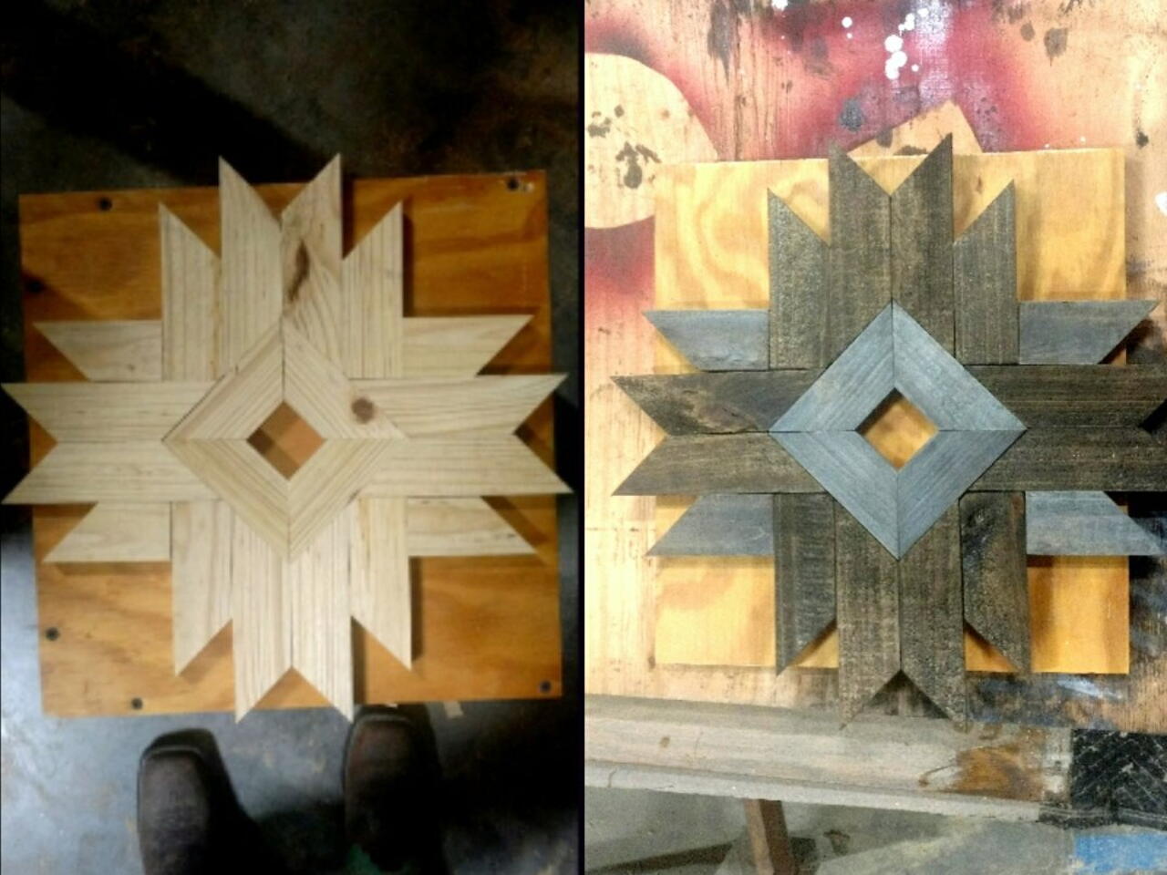 I stained all the pieces and then white washed a few to add variation.