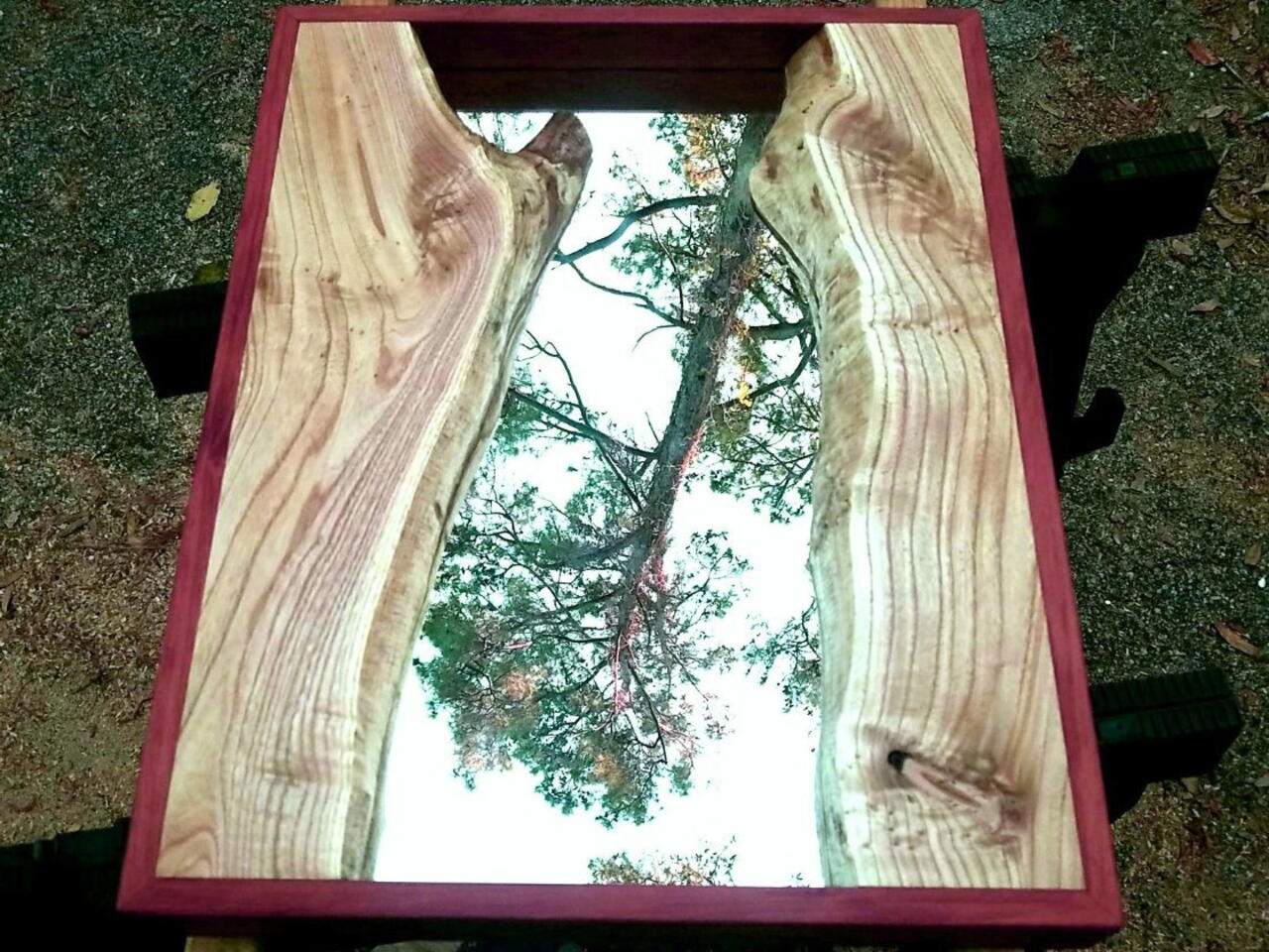 Slice live edge Catalpa in half and square off ends to fit into frame.